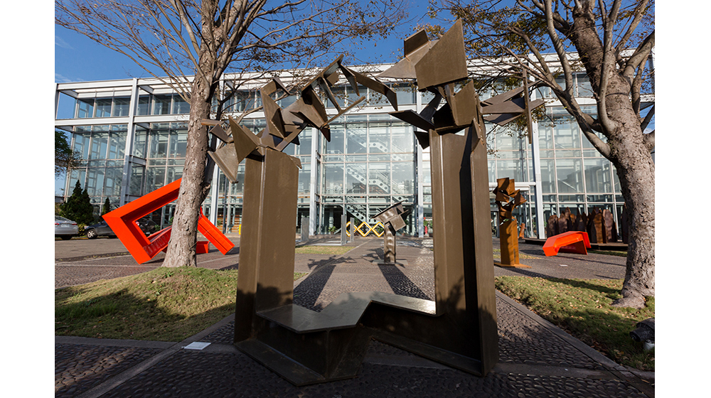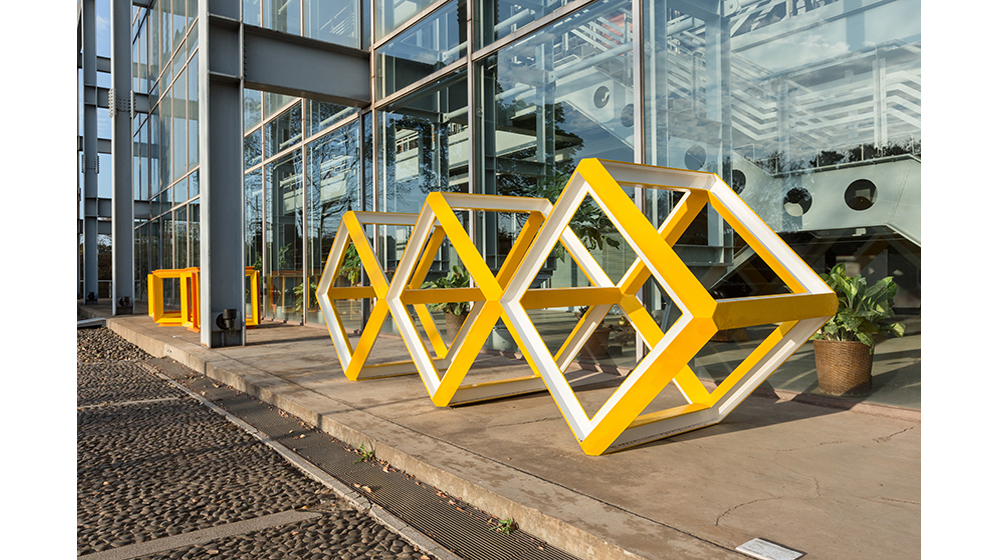 《空格三角柱組》(Framework of Steel Triangular Bars),52x52x245cm、73x73x245cm、64x64x245cm,2017