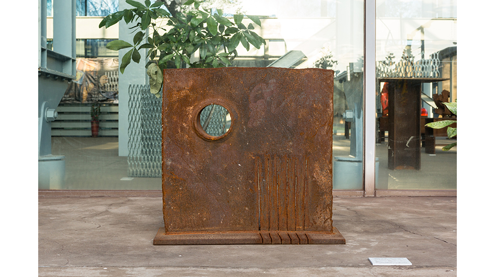 《人生的鋼鐵墊板 --久拾懷往》(Steel Platform of Life—Reminiscing the Past),45x45x3.5 cm,2017