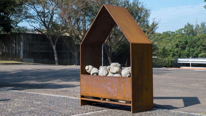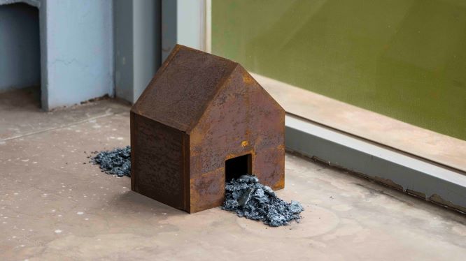 家裡有人嗎? Anybody Home?, 31.5 x 21 x 27 cm, 鋼鐵、麻繩 Steel, Rope