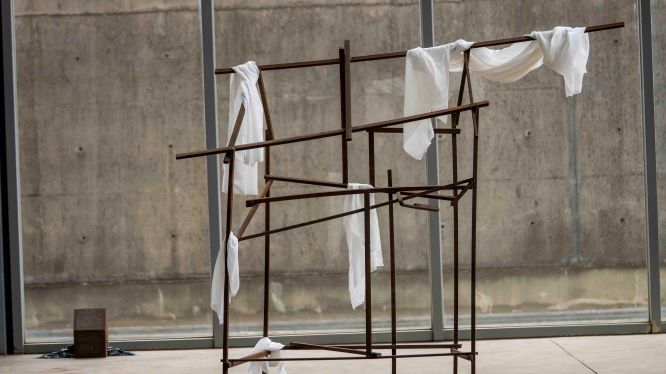 為什麼家裡沒有人? Why there's Nobody Home?, 223 x 110 x 185 cm, 鋼鐵、布料 Steel, Cloth